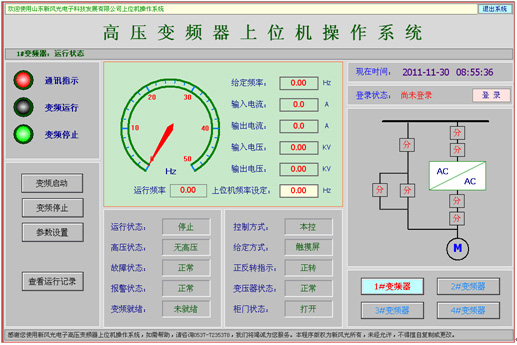 變頻器有三種控制方式,1、本地控制:直接利用變頻調(diào)速系統(tǒng)柜門(mén)主界面進(jìn)行變頻器所有功能的控制;2、遠(yuǎn)程控制:利用外控DCS遠(yuǎn)程控制信號(hào),對(duì)變頻器啟動(dòng)、停機(jī)、調(diào)速的控制;3、上位控制(非標(biāo)配,可選):利用提供的上位機(jī)軟件,與變頻器進(jìn)行Modbus RTU通訊,(需要其他配置,進(jìn)行轉(zhuǎn)換)實(shí)現(xiàn)對(duì)變頻器所有功能的控制。