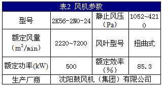 陶陽(yáng)煤礦中三井通風(fēng)機(jī)為兩臺(tái),一用一備,現(xiàn)場(chǎng)1#、2#通風(fēng)機(jī)設(shè)備參數(shù)相同,下面表1給出1#通風(fēng)機(jī)基本參數(shù)。
