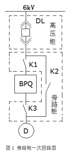 圖1手動(dòng)旁路柜中,共有3個(gè)高壓隔離開關(guān),為了確保不向變頻器輸出端反送電,K2與K3采用電磁互鎖操動(dòng)機(jī)構(gòu),實(shí)現(xiàn)電磁互鎖。當(dāng)K1、K3閉合,K2斷開時(shí),電機(jī)變頻運(yùn)行;當(dāng)K1、K3斷開,K2閉合時(shí),電機(jī)工頻運(yùn)行,此時(shí)變頻器從高壓中隔離出來(lái),便于檢修、維護(hù)和調(diào)試。