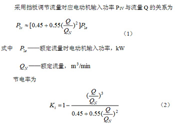風(fēng)機(jī)流量變化量,如前所述,采用變頻調(diào)速是有效的節(jié)電措施。根據(jù)GB12497-1995《三相異步電動(dòng)機(jī)經(jīng)濟(jì)運(yùn)行》對(duì)電機(jī)經(jīng)濟(jì)運(yùn)行管理的規(guī)定有如下的計(jì)算公式。