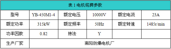 井口兩臺電機(jī)銘牌中主要參數(shù)如表1所示。