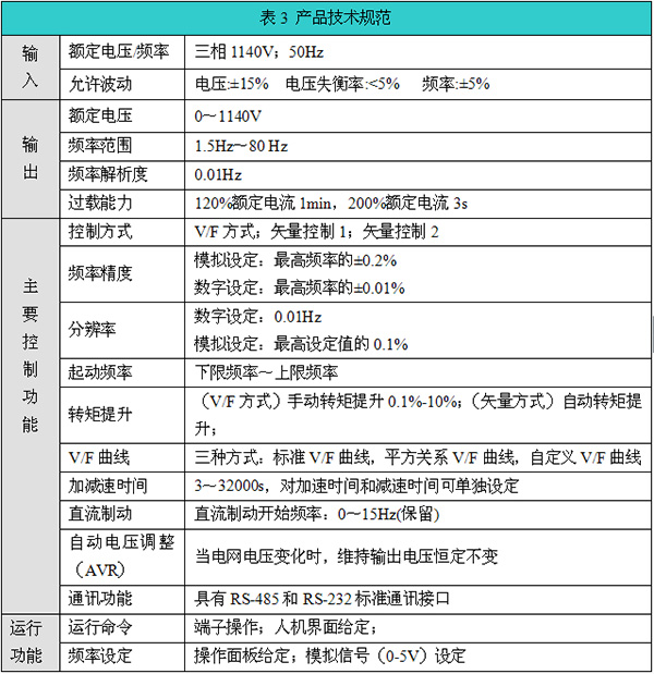本文僅對(duì)該變頻系統(tǒng)的技術(shù)特點(diǎn)簡述如下,與380V級(jí)通用變頻器相同部分不再贅述。