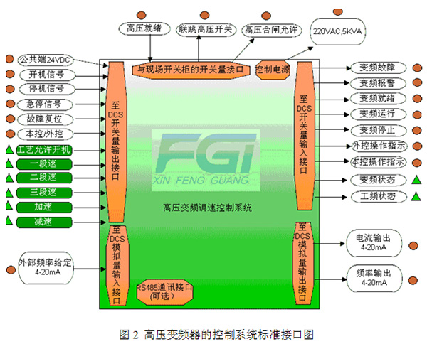 高壓變頻器的控制系統(tǒng)標(biāo)準(zhǔn)接口如圖2所示: