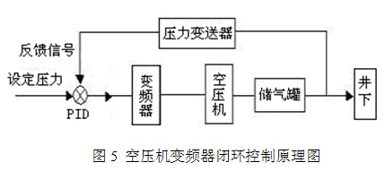 空氣壓縮機(jī)采用變頻調(diào)速技術(shù)進(jìn)行恒壓供氣控制時(shí),系統(tǒng)原理框圖如圖5所示。
