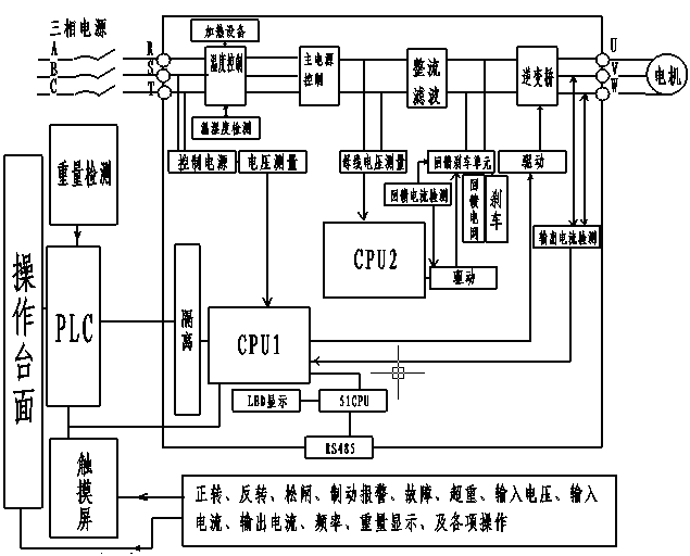 (8)變頻器具有封鎖輸出功能,下放時也可使吊鉤快速自由落體。
