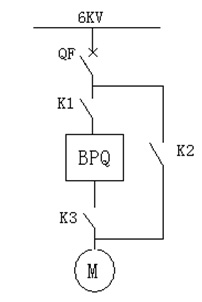 浙江省衢州巨化硫酸廠(chǎng)是我國(guó)首批自己設(shè)計(jì)、制造、安裝的重點(diǎn)硫酸生產(chǎn)企業(yè),是浙江省較大的硫酸生產(chǎn)廠(chǎng)。在硫酸生產(chǎn)過(guò)程中,需要對(duì)水冷極板進(jìn)行冷卻,冷卻水循環(huán)泵是硫酸生產(chǎn)工藝中的重要設(shè)備,過(guò)去冷卻水循環(huán)泵均不調(diào)速,利用出口閥門(mén)來(lái)控制水流量和管網(wǎng)壓力,由于設(shè)備的選擇都是按最大負(fù)荷情況來(lái)選型,在實(shí)際運(yùn)行中設(shè)備留有較大的裕量,冷卻水的流量與壓力是通過(guò)冷卻水循環(huán)泵出、入口聯(lián)絡(luò)管上的調(diào)節(jié)閥來(lái)進(jìn)行調(diào)節(jié),造成電動(dòng)機(jī)運(yùn)行效率較低,造成電能浪費(fèi),為降低企業(yè)生產(chǎn)成本,廠(chǎng)家領(lǐng)導(dǎo)經(jīng)過(guò)反復(fù)論證,多方比較,決定選用我公司JD-BP37-280F型高壓變頻器對(duì)冷卻水循環(huán)泵進(jìn)行變頻調(diào)速節(jié)能改造,以解決能源浪費(fèi)問(wèn)題。用戶(hù)冷卻水循環(huán)泵的電動(dòng)機(jī)參數(shù)為6KV/280KW異步電動(dòng)機(jī),額定轉(zhuǎn)速985r/min,水泵參數(shù)為500S-35 單級(jí)雙吸離心泵。冷卻水循環(huán)泵工作原理如圖2所示,三臺(tái)循環(huán)泵兩開(kāi)一備。