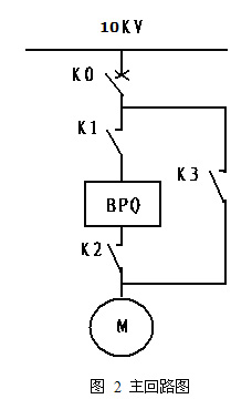 根據(jù)用戶現(xiàn)場要求,此次兩臺變頻器均采用一拖一控制方案,采用手動旁路控制,其一次電路如下圖2所示: