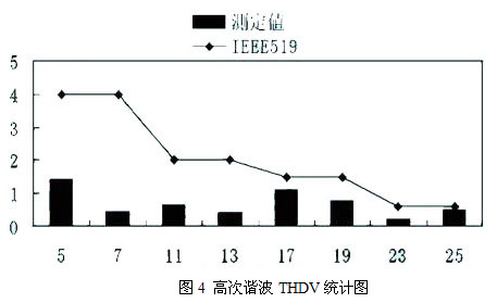 變頻器采用移相多脈沖整流變壓器,二次側(cè)所接各個單元產(chǎn)生的高次諧波電流在相位上產(chǎn)生偏移,因此在變壓器一次側(cè)互相抵消,將一次側(cè)到電網(wǎng)的電流諧波控制到最小。變頻器輸入電流諧波在不加任何濾波器的情況下也能滿足IEEE519國際標準,實際檢測值如圖4所示。