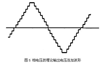 變頻器的相電壓輸出為8個單元串聯(lián)輸出,相電壓輸出17電平。每個單元的輸出都采用正弦波PWM波形調(diào)制,載波頻率為3kHz,輸出電流為正弦波,輸出電壓非常近似正弦波。相電壓的理論輸出電壓迭加波形如圖5所示。