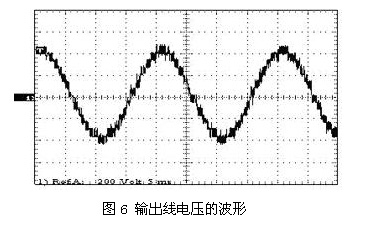 另外,控制器與功率單元之間采用多通道光纖通訊技術(shù),低壓部分和高壓部分完全可靠隔離,系統(tǒng)具有極高的安全性,同時具有很好的抗電磁干擾性能,并且各個功率單元的控制電源采用一個獨立于高壓系統(tǒng)的統(tǒng)一控制器,方便調(diào)試、維修、現(xiàn)場培訓(xùn),增強了系統(tǒng)的可靠性??刂破饔幸惶转毩⒂诟邏弘娫吹墓╇婓w系,在不加高壓的情況下,設(shè)備各點的波形與加高壓情況基本相似,在模擬調(diào)試情況下八單元串聯(lián)后輸出的線電壓如圖6所示。給整機可靠性、調(diào)試、培訓(xùn)帶來了很大方便。