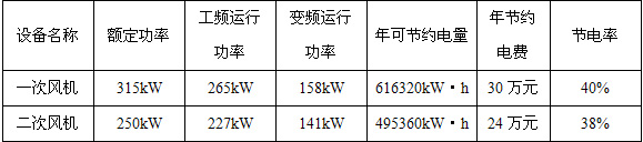⑶改善了工藝。投入變頻器后風(fēng)機可以非常平滑穩(wěn)定的調(diào)整風(fēng)量,運行人員可以自如的調(diào)控,風(fēng)機運行參數(shù)得到了改善,提高了效率。