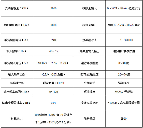 表2 JD-BP37-2000F 高壓變頻器技術(shù)參數(shù)
