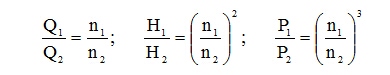 按照流體機(jī)械的相似定律,風(fēng)機(jī)、水泵的流量Q、壓頭(揚(yáng)程)H、軸功率P與轉(zhuǎn)速n之間有如下比例關(guān)系: