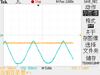 可以用示波器的雙通道檢測轉(zhuǎn)換板的運放集成塊的12腳與13腳的波形,如圖2所示。