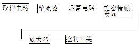 本實用新型的變工頻軟切換控制裝置,是由取樣電路、整流器、反向比例電路、濾波器、施密特觸發(fā)器、放大器與控制開關(guān)依次串接而成。其特點為: