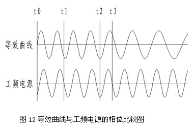 圖12是依據(jù)τp=20s的系統(tǒng)的電動(dòng)機(jī)感應(yīng)電動(dòng)勢(shì)的等效曲線與工頻電源的相位比較圖。