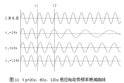 由公式曲線分別作出τp=20s、60s、120s的電動(dòng)機(jī)感應(yīng)電動(dòng)勢(shì)頻率衰減曲線,如圖11所示。