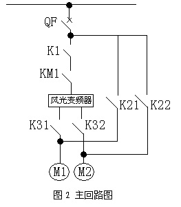 根據(jù)用戶要求,現(xiàn)場(chǎng)共兩套系統(tǒng),配置兩臺(tái)風(fēng)機(jī),配置一套變頻器,即一臺(tái)變頻器拖動(dòng)二臺(tái)電機(jī),采用一拖二方式。旁路系統(tǒng)由1個(gè)高壓真空接觸器KM1和5個(gè)高壓隔離開(kāi)關(guān)K1、K21、K22、K31、K32組成。要求K21不能和K1、K31同時(shí)閉合,K22不能和K1、K32同時(shí)閉合,在電氣上實(shí)現(xiàn)互鎖。K1與K31閉合,K21斷開(kāi),1#電機(jī)變頻運(yùn)行;K1與K32閉合,K22斷開(kāi),2#電機(jī)變頻運(yùn)行。K1與K31斷開(kāi),K21閉合,1#電機(jī)工頻運(yùn)行;K1與K32斷開(kāi),K22閉合,2#電機(jī)工頻運(yùn)行。