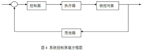根據(jù)工藝流程,在本系統(tǒng)中,被控對(duì)象是核心,被測(cè)信號(hào)經(jīng)變送器轉(zhuǎn)換成標(biāo)準(zhǔn)信號(hào)(4-20mA或0-5V),與給定值進(jìn)行比較,并對(duì)結(jié)果進(jìn)行調(diào)節(jié)運(yùn)算,以輸出作為控制信號(hào),經(jīng)執(zhí)行器實(shí)現(xiàn)對(duì)被控對(duì)象的調(diào)節(jié)。控制系統(tǒng)方框圖如圖4所示: