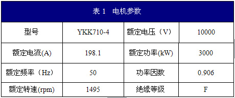/3000kW三相鼠籠式異步電動機(jī)(電機(jī)參數(shù)如表1所示),根據(jù)蒸發(fā)風(fēng)機(jī)的要求2559kW,轉(zhuǎn)速2564