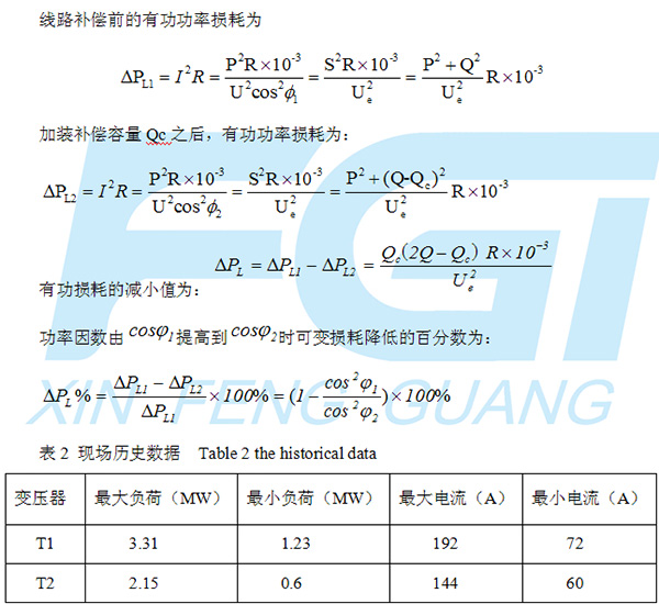采用固定電容器的無功補償方式后,從現(xiàn)場實際運行的情況來看,電網(wǎng)在重負荷時存在“欠補”現(xiàn)象,在低負荷時存在著一些無功倒送,即“過補”現(xiàn)象,這樣不僅會使變壓器二次側(cè)電壓升高,而且還會使容性無功功率在輸電線路上傳輸,增加電能損耗。