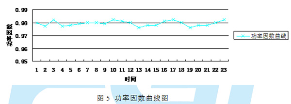 設(shè)備運行電壓曲線如圖3所示,電流曲線如圖4所示,功率因數(shù)曲線如圖5所示