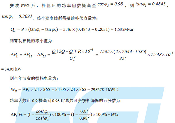 即變壓器在輸送同樣的有功功率的情況下,所需要變壓器的容量可以減少0.495MVA。